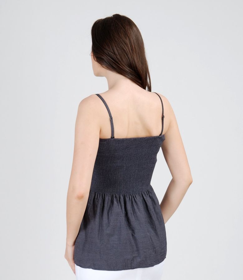 Blouse-skirt with elasticized waist (Dark blue-White)