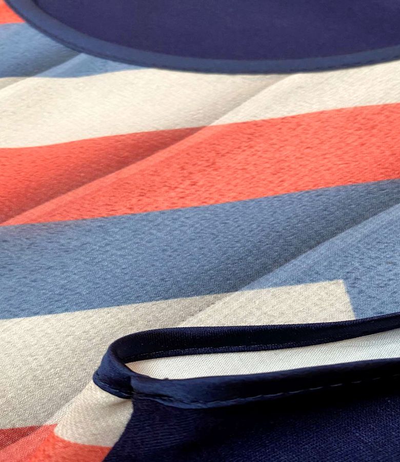 Elastic jersey blouse,with veil front printed with stripes, with round neckline and draped sleeves.