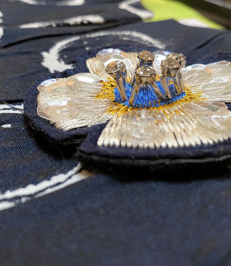Elegant jacket,padded,made of elastic corrugated cotton,without collar,with 3/4 sleeves and detachable brooch.Closes with 4 front staples on the face,up to the bust level.Do not require ironing.