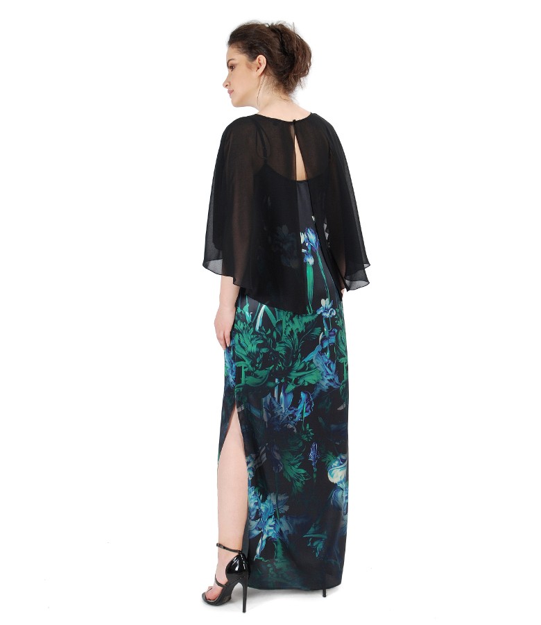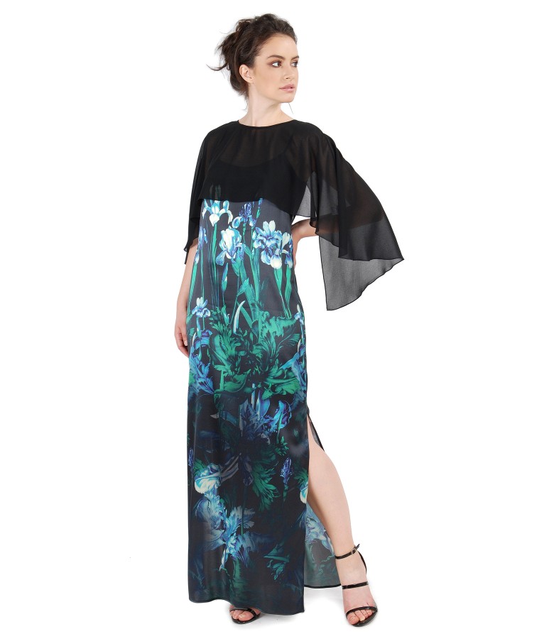 Long silk dress with floral print, adjustable straps with side slits. Limited collection.
