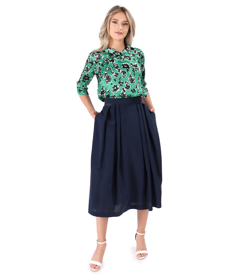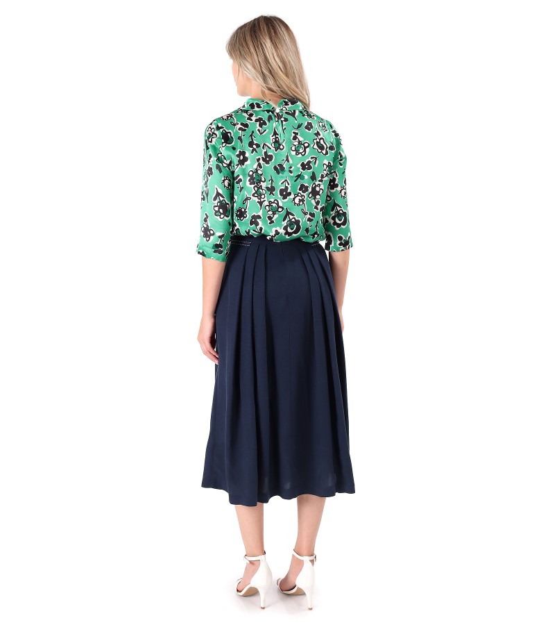 Fusta cu pliuri cu bluza din matase naturala imprimata