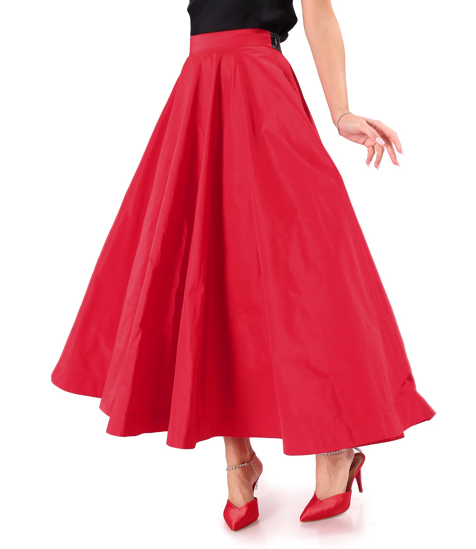 Long taffeta skirt with decorative elastic on the back (Red), size