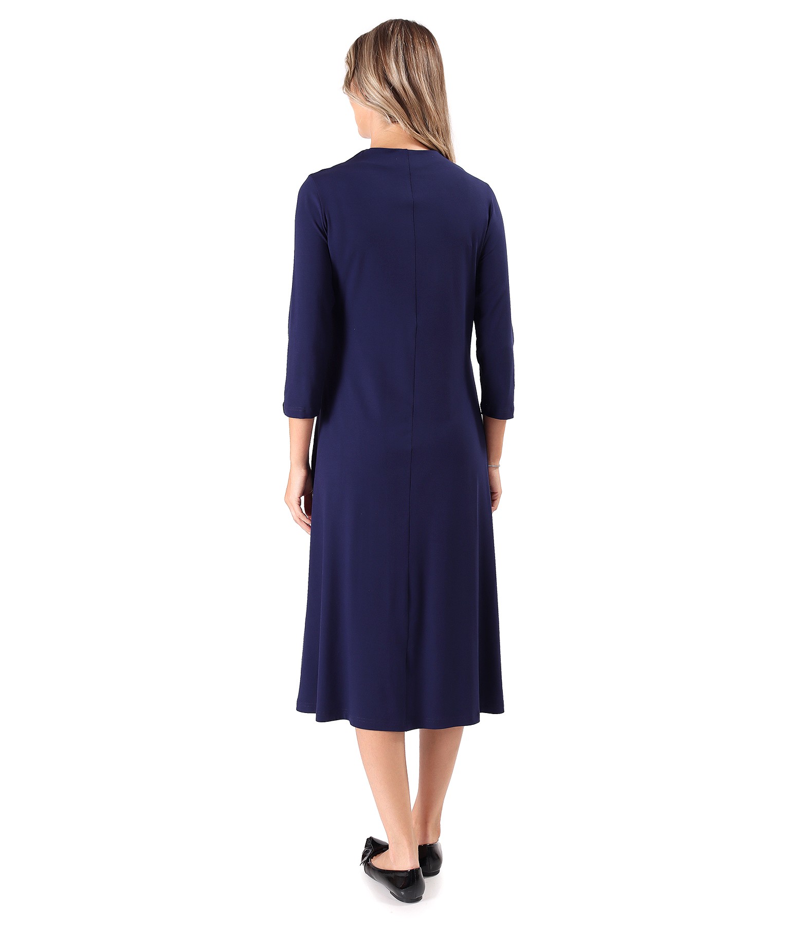 Midi dress made of elastic viscose jersey slightly flared, and 3/4 sleeves. It has no closure system.
