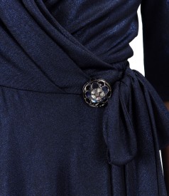 Midi dress, made of elastic jersey with shiny effect, doubled at the top with elastic jersey, with 3/4 sleeves, and with drawstring at the waist and brooch. It closes with a drawstring at the waist.