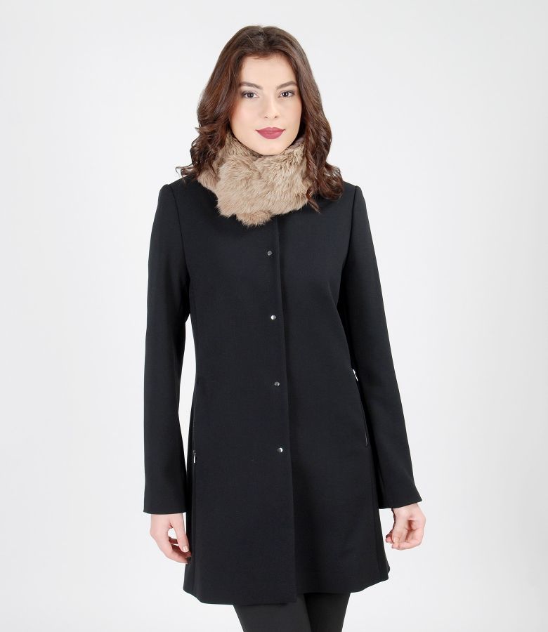 Natural rabbit fur collar, rectangular shape, wrinkled on middle-back. Closed at termination with a hook.