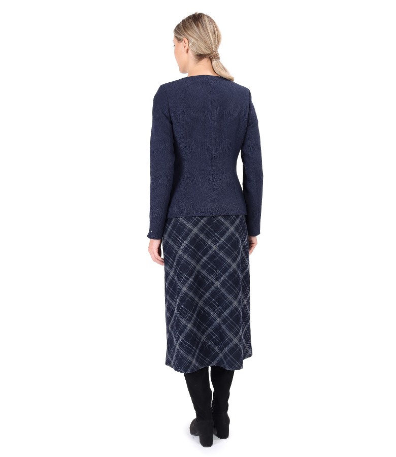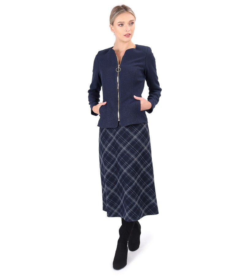 Office outfit with plaid midi skirt and zippered jacket on the front (), size