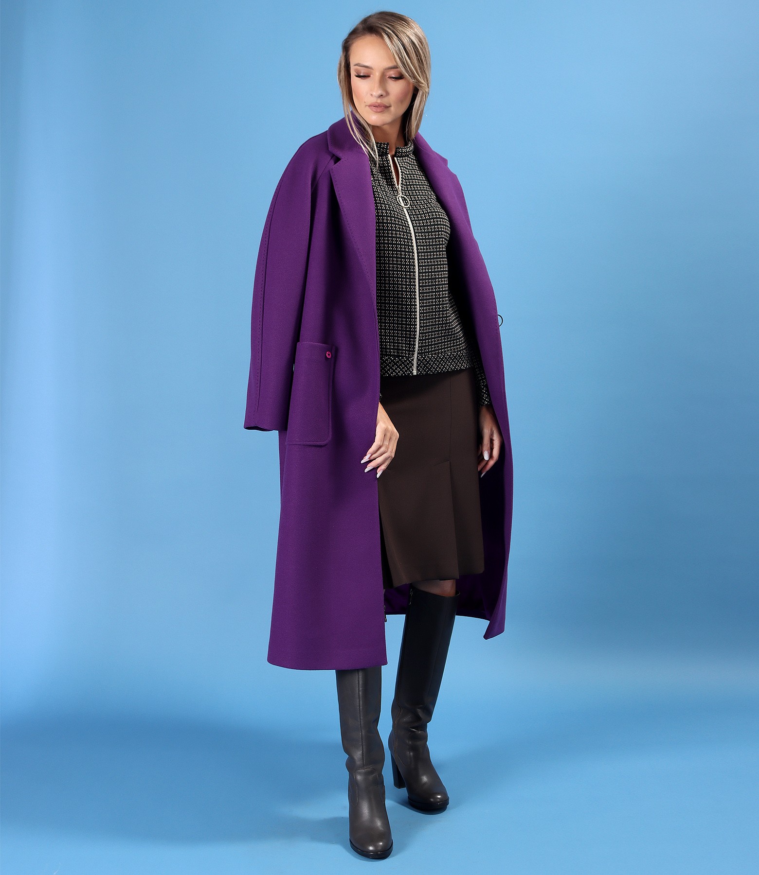 Pardesiu midi lejer din stofa groasa cu lana, dublat cu viscoza, cu buzunare aplicate pe fata, maneci lungi tip raglan si cu slit pe mijloc spate.