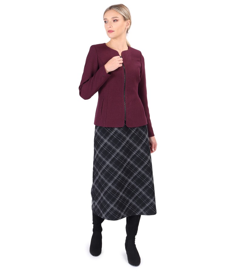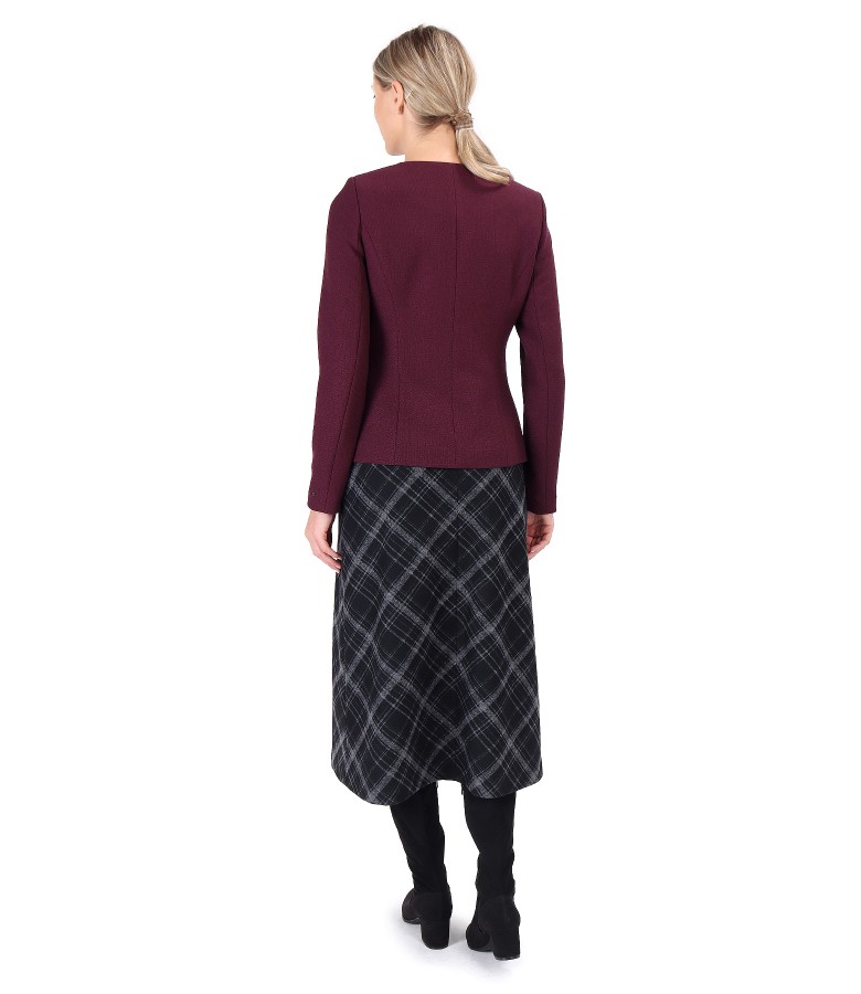 Flared midi skirt made of thick elastic checkered fabric, padded and with a decorative heart at the waist.