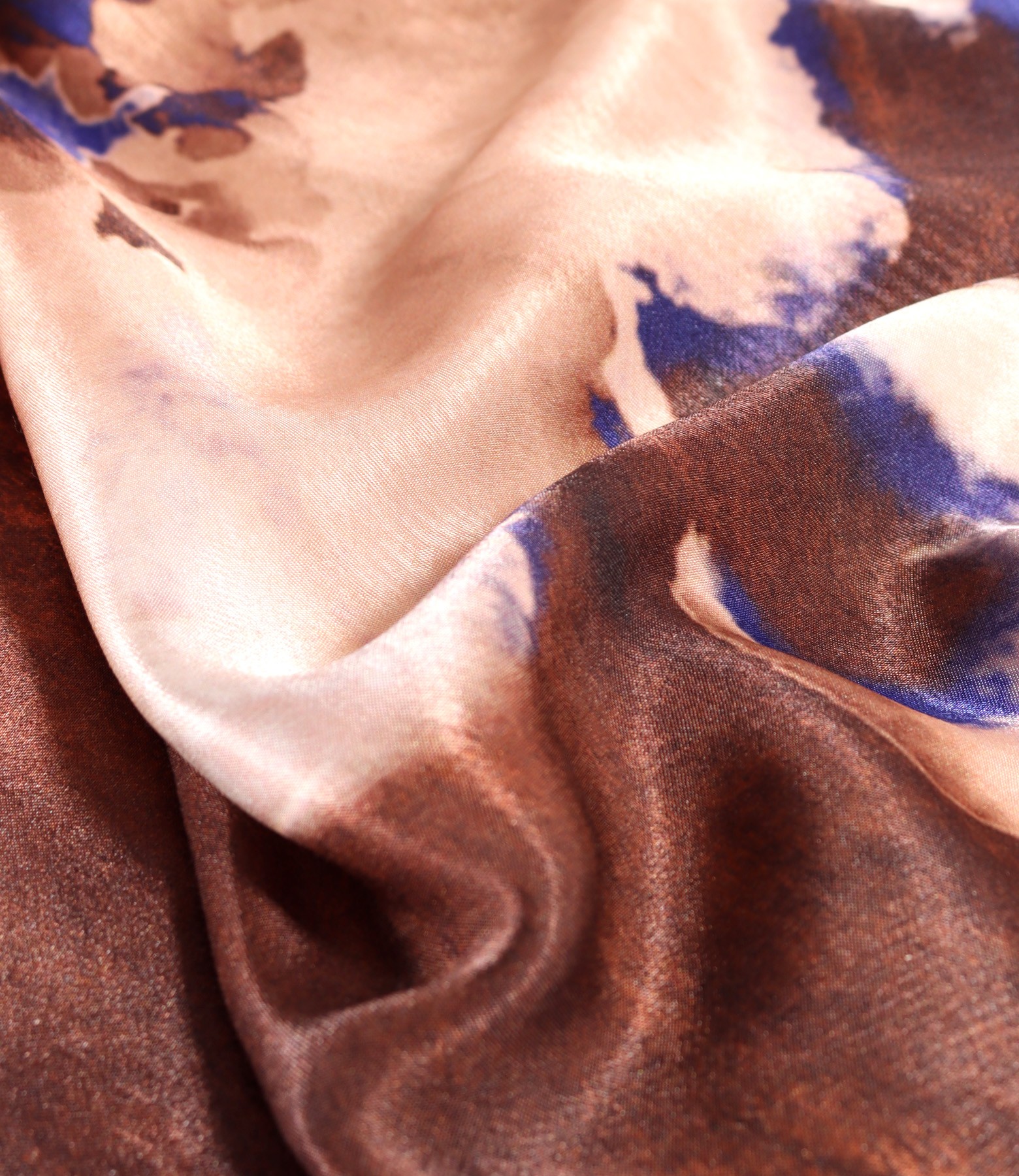 Satin viscose blouse printed with oversized flowers, long gathered sleeves with cuffs of the same material with 2 buttons, with a pleat on the center front, and a round collar. Fastens with a button on the center back. The position of the print varies per product.