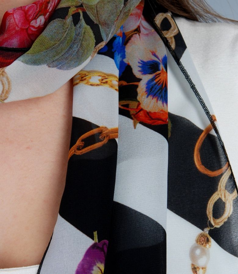 Printed crepe veil scarf, rectangular shaped.