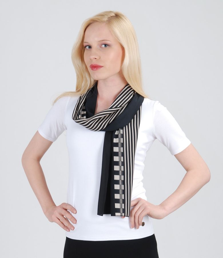 Printed veil scarf with a slight satin effect, rectangular shape.