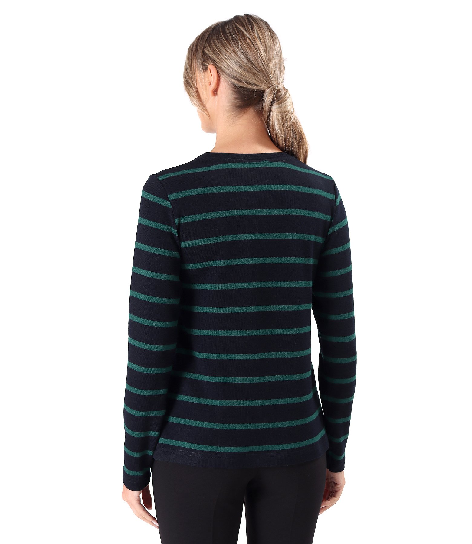 Blouse made of thick elastic jersey with wool, with stripes, with long sleeves and a round neckline.