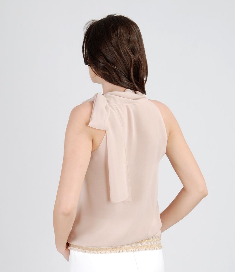 Casual veil blouse, doubled, with scarf, sleeveless, with decorative trim, elastic at termination.