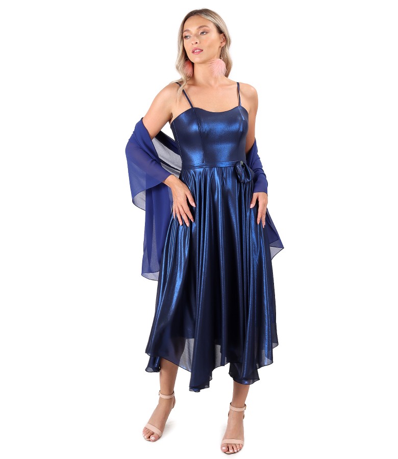 Occasion dress with a pearlescent veil skirt doubled with viscose and corset, with cups and adjustable straps and a bow at the waist.